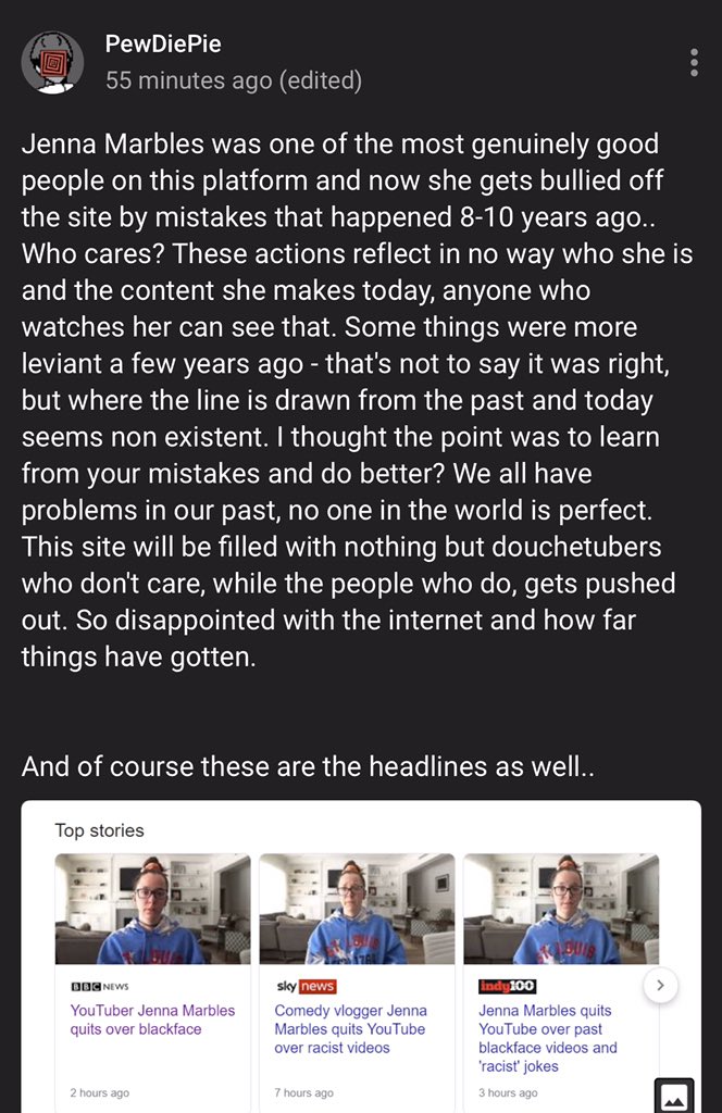Jenna marbles apologizes for offending fans over the years and announces her plan to take an indefinite break from youtube.